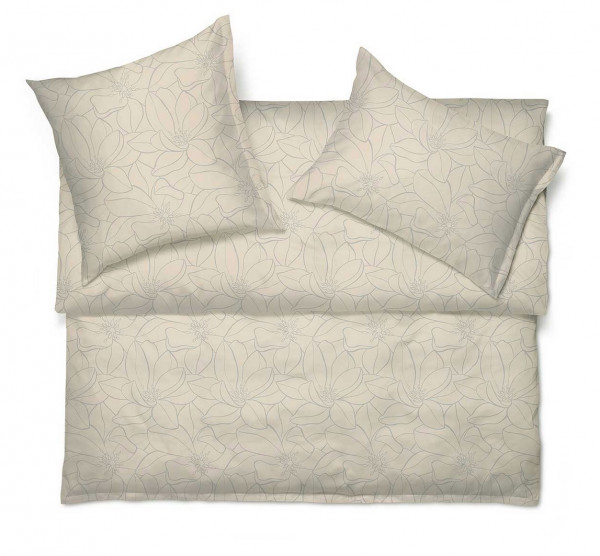 Das grosszügige, organische Jacquard-Muster erinnert an die frühlingshafte Pracht von blühenden Magnolienbäumen. Die geöffneten Blüten schmiegen sich dicht aneinander und können sich auf dem edlen Gewebe vollkommen entfalten. Das Allover-Bettwäsche-Design überrascht mit traumhaft opulenten Blüten, die sich über den gesamten Fond ziehen und ineinander verschmelzen. Der unifarbene Hintergrund wird durch glänzende Jacquard-Adern und Verwebungen elegant durchzogen.