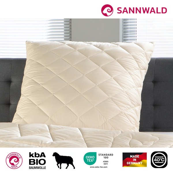 Natürlicher Schlaf mit dem Sannwald Kissen aus Bio-Baumwolle. Das Lima Kissen aus Bio-Baumwolle unterstützt Dich bei Deinem persönlichen Schlafritual – über das ganze Jahr hinweg. Durch die atmungsaktive Füllung kannst Du in den wärmeren Monaten angenehm kühl und während der kälteren Jahreszeit wohlig warm schlafen. Der Bezugsstoff aus 100% kbA Baumwolle ist mit 100% kbA Baumwolle versteppt. Das separate Innenkissen ist mit Wollkugeln gefüllt.