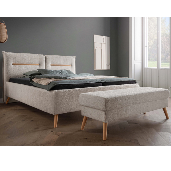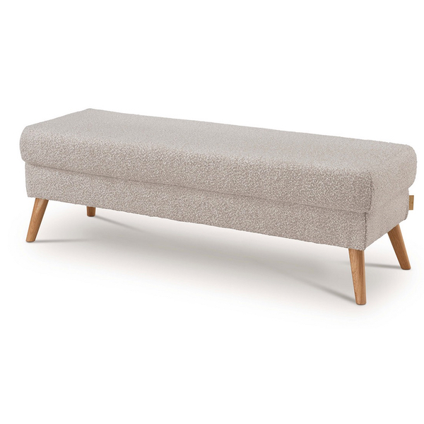 Die Forestales Bettbank Lyon ist die ideale Ergänzung für Ihr Schlafzimmer oder Wohnzimmer. Komplett bezogen mit dem hochwertigen Ascot Bouclé Zweiton-Gewebe in der eleganten Farbe Pearl lädt sie zum gemütlichen Sitzen und Entspannen ein.Die runden Füße aus massiver Wildeiche, geölt mit naturbelassenen Rohstoffen, setzen natürliche Akzente und sorgen für einen stabilen, sicheren Stand. Das klare, zeitlose Design macht die Bettbank zu einem vielseitigen Möbelstück, das in viele Einrichtungsstile passt. Mit den Maßen 140 x 48 x 48 cm und einem Bodenabstand von 18 cm bietet die Forestales Bettbank Lyon ausreichend Platz und Komfort - perfekt abgestimmt auf das Polsterbett Lyon und Ihre individuellen Bedürfnisse.