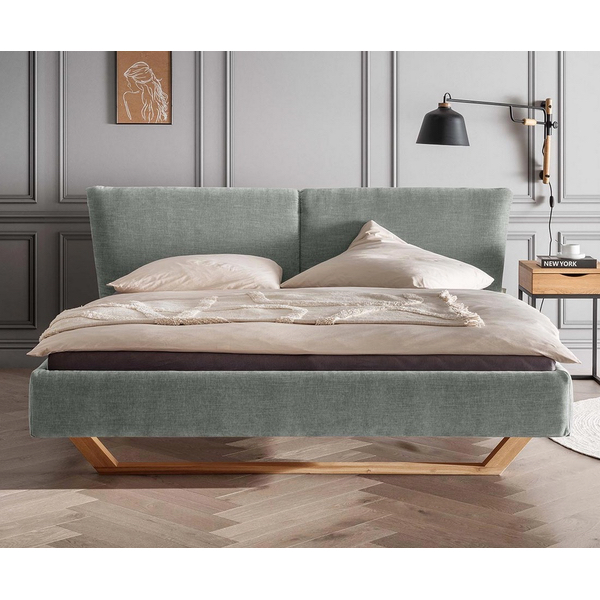 Die Kufenfüsse aus massiver Wildeiche setzen natürliche Akzente und sorgen für Stabilität und Langlebigkeit. Die Einlegetiefe von 16 cm sowie die massiven Auflagen für Lattenroste, die im Lieferumfang enthalten sind, garantieren eine optimale Matratzenauflage und höchsten Schlafkomfort.