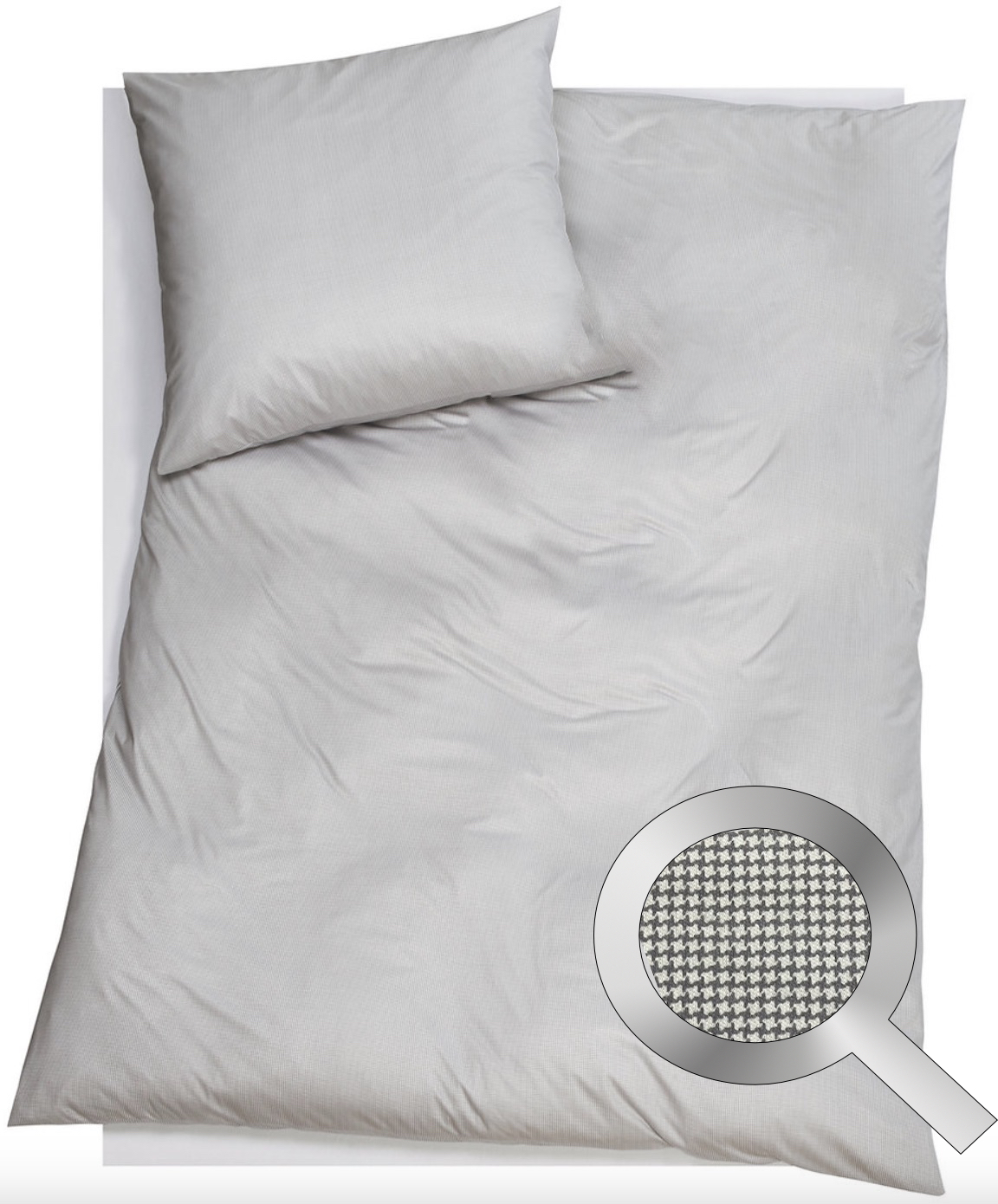 Hinweis: Die Abbildung zeigt die Bettwäsche in Hahnentritt kiesel/grau 73. Zum Lieferumfang gehört nur ein Deckenbezug + ein Kissenbezug in der gewählten Größe. Zusatzkissenbezüge sind optional gegen Aufpreis erhältlich.