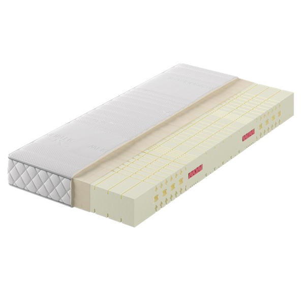 Die Werkmeister Werkmeister M S70 PLUS WS ist eine Kaltschaummatratze, die durch eine hervorragende Körperanpassung überzeugt. Die Körperkomfortzonen-Gestaltung der Werkmeister Matratze kombiniert eine Oberflächenstruktur in 3D-Würfelschnitt mit speziellen Rillen im Lordose-Bereich, so dass eine sehr gute Körperanpassung erreicht wird. Das stützende Lordoseelement der M S70 PLUS WS ist im Vergleich zur M S70 PLUS WS näher in Richtung Schulterzone positioniert. Darüberhinaus sind die Schnittkonturen im Beckenbereich tiefer ausgearbeitet. Die Schulterzone mit horizontalen Kanälen sorgt sowohl für Entlastung - vor allem bei Seitensschläfern- und stellt gleichzeitig eine hervorragende Klimatisierung der Matratze sicher. Die Werkmeister M S70 PLUS WS wird Menschen mit Schwerpunkt eher im Hüftbereich - also tendenziell weniger breite Schultern - empfohlen. Die Matratze ist daher auf eine hüftbetonte Wirkweise ausgerichtet.
