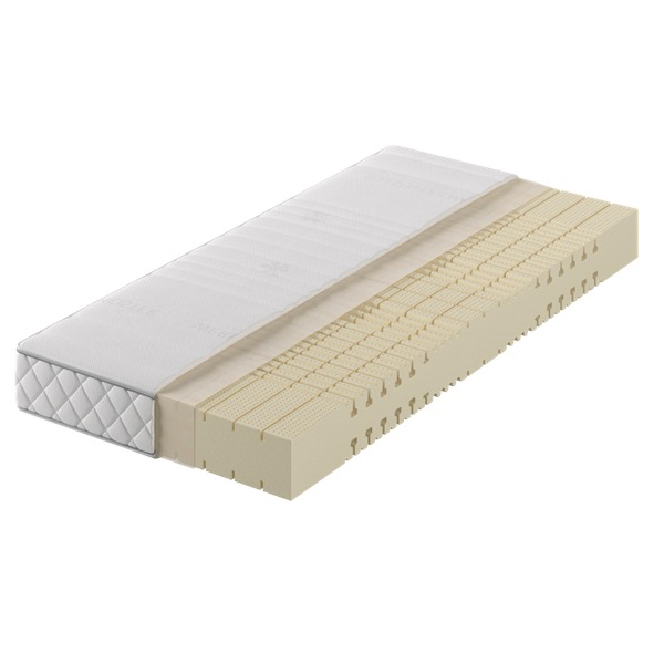 Die Werkmeister M L420 bietet eine weniger stark ausgeprägte Schulterzone und eine umfangreiche, in Längs- und Querrichtung profilierte Kontur. Durch die weniger stark ausgeprägte Schulterzone wird der Schwerpunkt der Körperkontur Richtung Beckenbereich verlagert, was dort zu einem sanften Einsinken führt. Gleichzeitig bietet das Talalay Latex eine hohe Elastizität und ventilierende Eigenschaften.Die Werkmeister M L420 Latexmatratze ist Schadstoffgeprüft nach ÖKO TEX 100 Klasse 1 (für Babys und Kinder geeignet). Außerdem besitzt die Werkmeister M L420 Latexmatratze das FKT Prüfsiegel für Körperverträglichkeit und das Cradle to Cradle Zertifikat in Silber für die Verwendung umweltverträglicher Materialien.